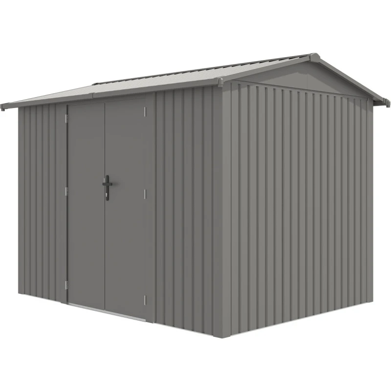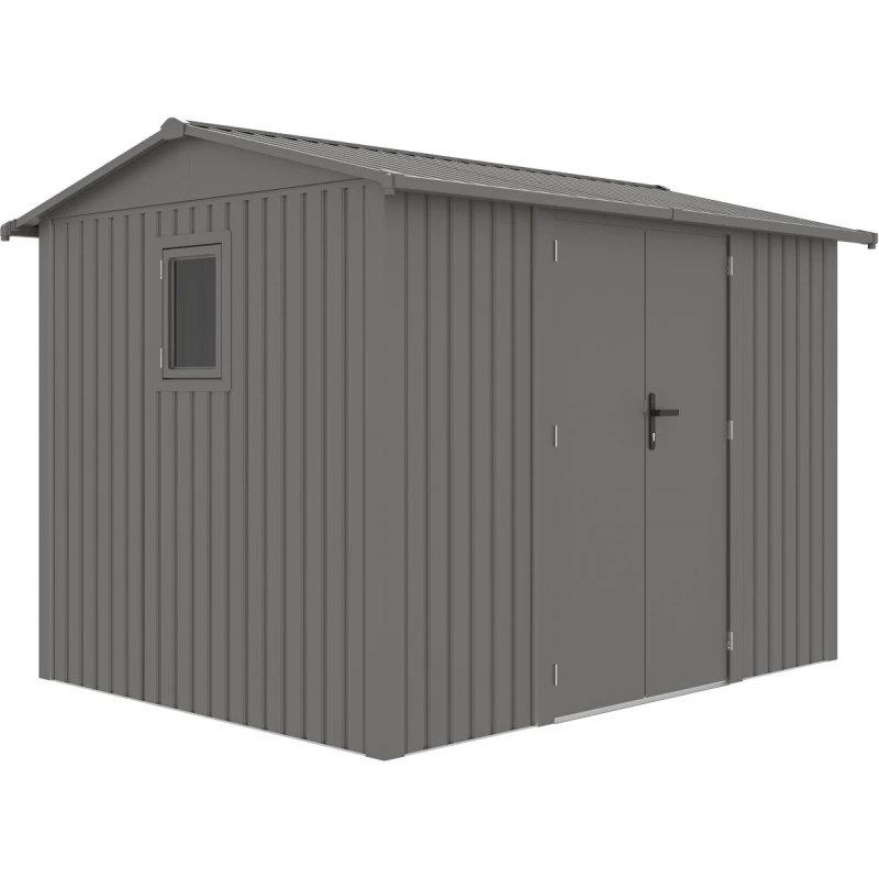 Son look moderne et sa couleur contemporaine s’intègrent dans tout type d’extérieur. L’abri de jardin dispose d’une double porte avec serrure à clés (3 clés fournies), très utile pour conserver en toute sécurité son contenu. La double porte est battante et haute, vous pourrez ainsi rentrer dans l’abri tout votre matériel de jardinage encombrant ou votre mobilier, ou encore tout l’équipement de votre piscine si vous le destinez en pool house.