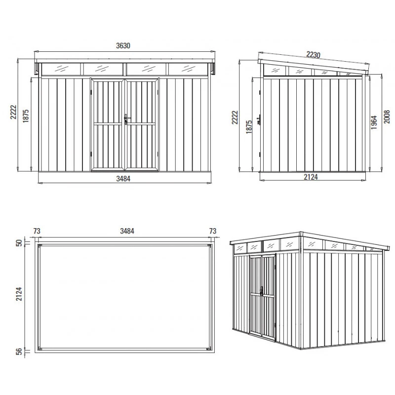 Abri De Jardin En Bois Composite 28mm Anthracite 8,09m² GORDON Skylight – Woodlife Garden