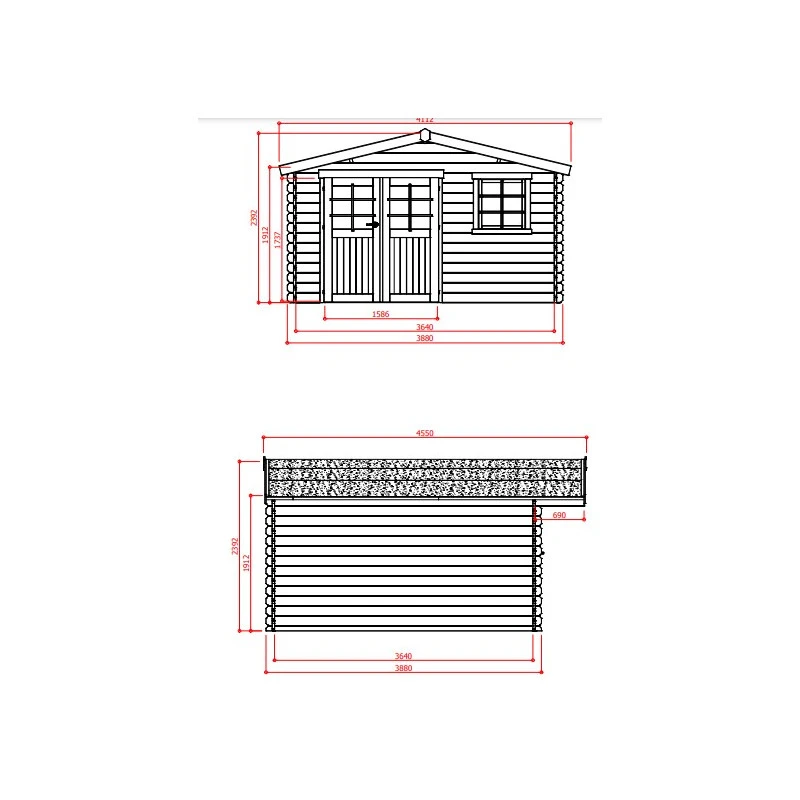 • Hauteur faîtage / parois : 232 / 184cm