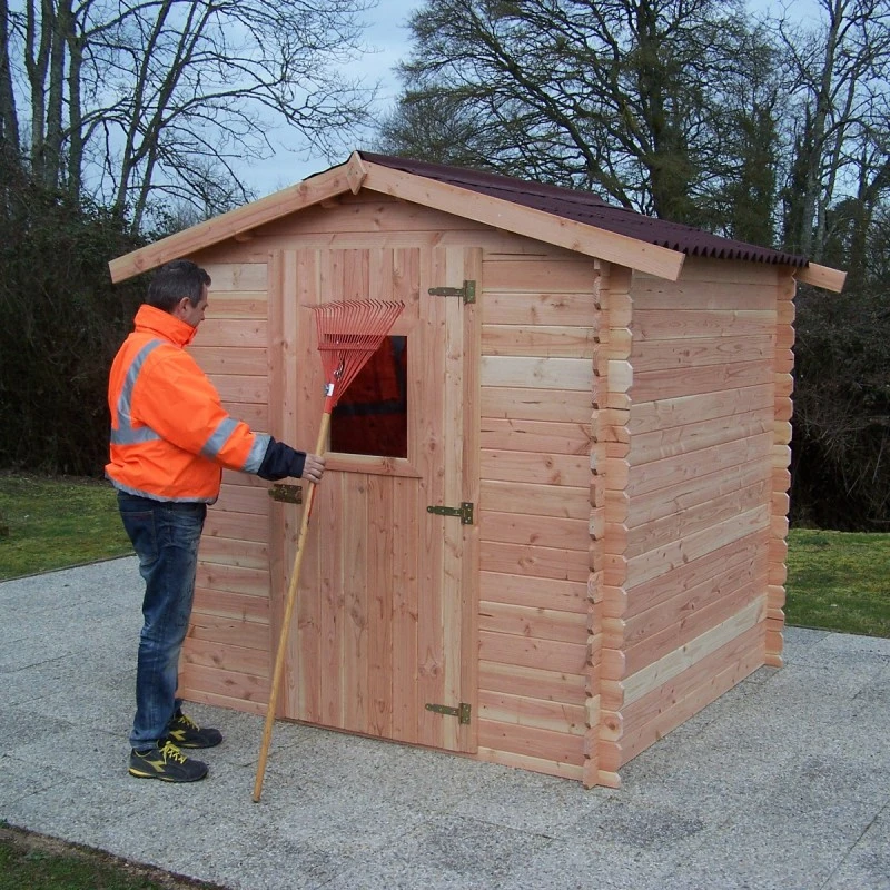 Ce charmant cabanon de jardin Dublin d’une surface de 4,28m² est le plus petit de la gamme d’abris en madriers de 28mm d’épaisseur, et il peut être installé sans autorisation préalable de la mairie (abris de surfaces inférieures à 5m²).
