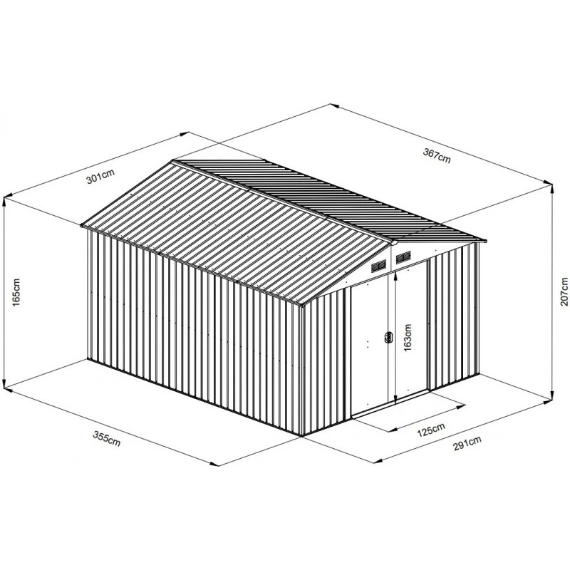 ● Dimensions extérieures hors tout (lxPxH) : 301x367x207cm