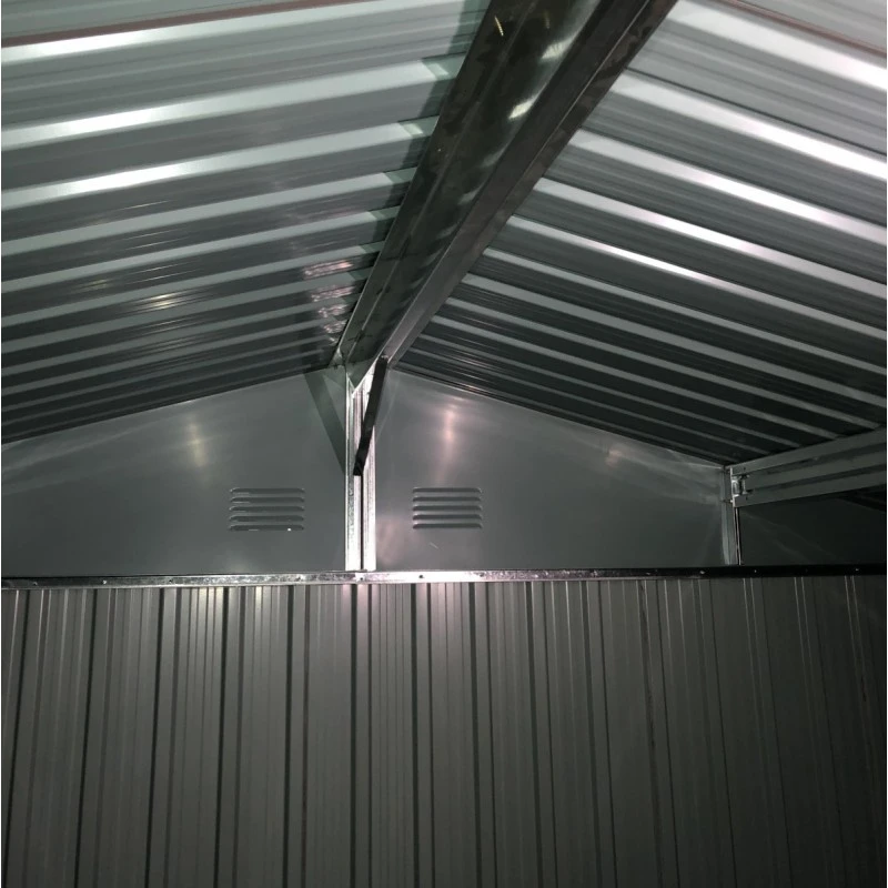 Cet abri jouit d’une excellente stabilité structurelle grâce à l’armature en acier galvanisé à chaud en profilés épais de 0,6mm. Les panneaux épais de 0,25mm sont d’un maniement léger, et se fixent facilement et rapidement sur l’armature au moyen de la visserie fournie. Les panneaux sont également galvanisés à chaud et recouvert d’une finition qui assure une excellente durabilité dans le temps. De plus, un kit d’ancrage fourni améliore grandement la tenue de l’abri en cas de vents violents, pour votre sérénité.