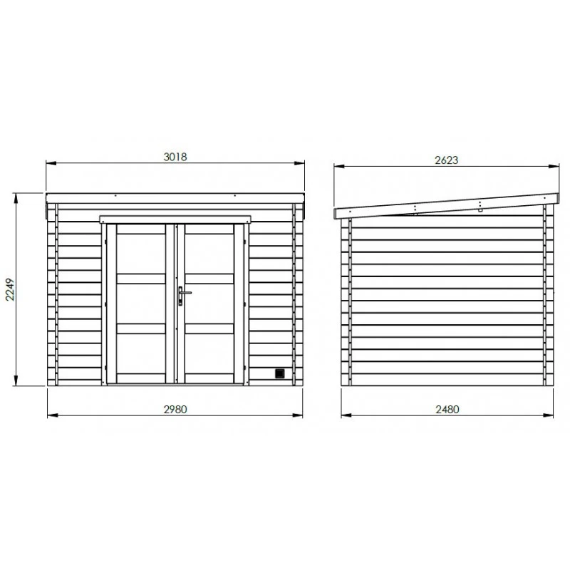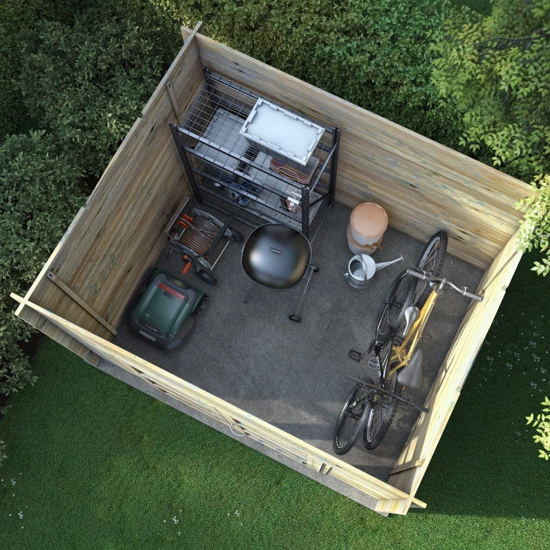 Le toit plat des abris de jardin modernes Nicia est conçu en voliges pour une longévité accrue et un aspect authentique à l’intérieur de l’abri. Il est conseillé de remplacer le feutre bitumé inclus par une couverture autoadhésive, disponible en option afin d’améliorer son étanchéité.