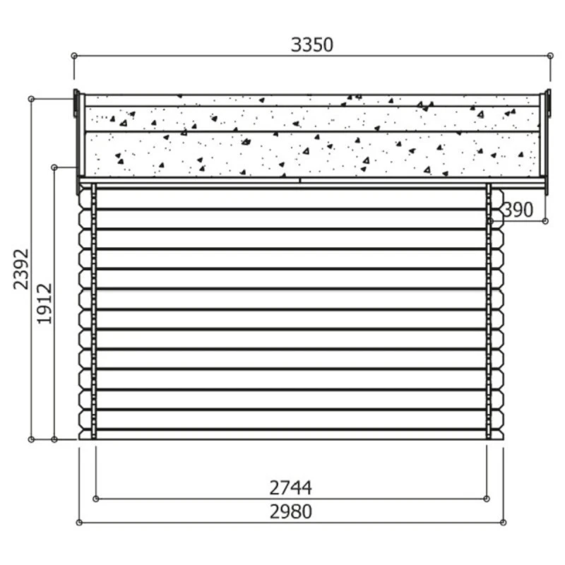 • Dimensions extérieures hors-tout : 3,45×3,35m