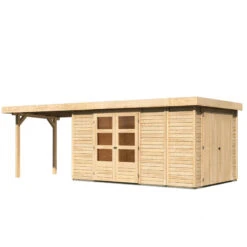 Abri De Jardin En Bois Massif 8,88m² Kastorf 7 Avec Appentis 320cm Et Paroi Arrière – Karibu