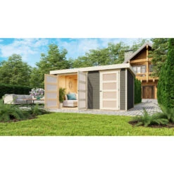 Abri De Jardin En Bois Massif Gris Terre 10,98m² Avec Cloison Intérieure Mühlentrup 2 – Karibu