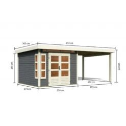 Abri De Jardin En Bois Massif Gris Terre 6,55m² Kerko 4 Avec Appentis 280cm – Karibu