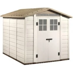 Abri De Jardin 4m² En PVC UTILITY Blanc Et Gris Vert Grosfillex + Kit Ancrage Offert