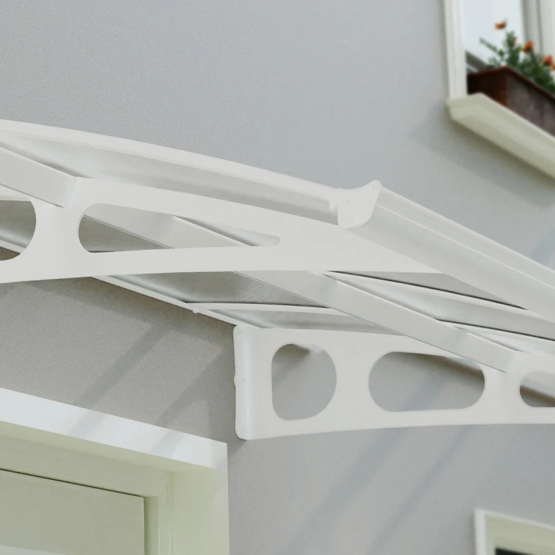 Cet auvent peut supporter une charge de neige maximale de 120kg/m² ou faire face à des vents de 120km/h. Une gouttière à l’avant détourne la pluie sur les côtés, et un joint en caoutchouc assure l’étanchéité avec la paroi. Il s’installe simplement et rapidement avec le kit de fixation fourni. Ce produit bénéficie d’une garantie de 3 ans.