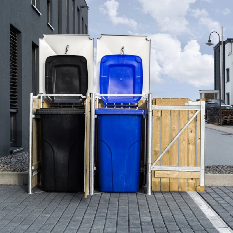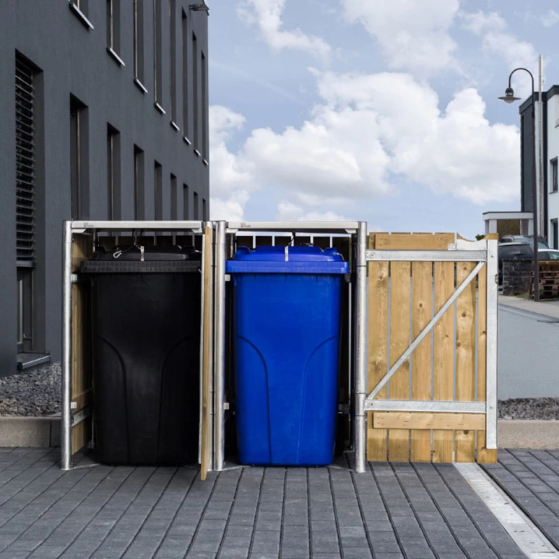 Ce cache-poubelles Hide à double compartiment est une solution qui mêle esthétisme et grande fonctionnalité. Cadre en acier galvanisé à chaud et parois en planchettes de pin traité. L’aspect du bois naturel s’intègrera harmonieusement dans votre aménagement extérieur et les lignes épurées du cadre apportent une touche moderne et élégante.