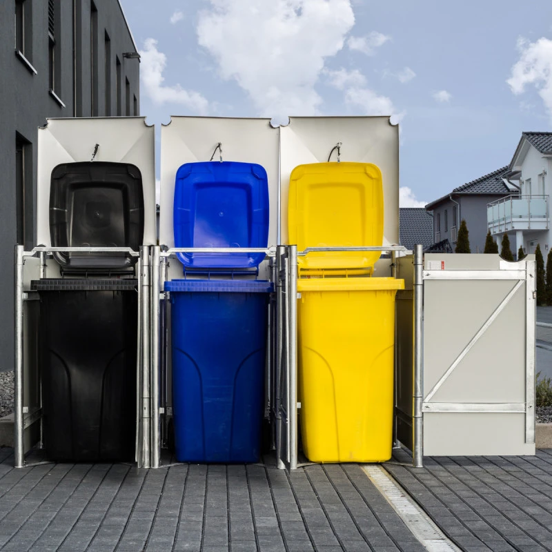 L’avis du spécialiste sur la cache-poubelle 3 compartiments Müllbox en aluminium gris 3x140L – HIDE