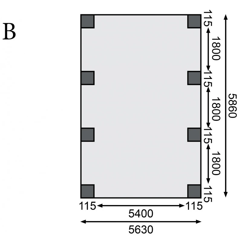 Dimensions extérieures (LxP) : 563x586cm