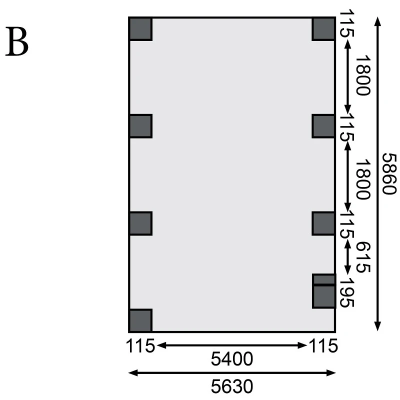Nombre des poteaux : 8 + 1 en arc