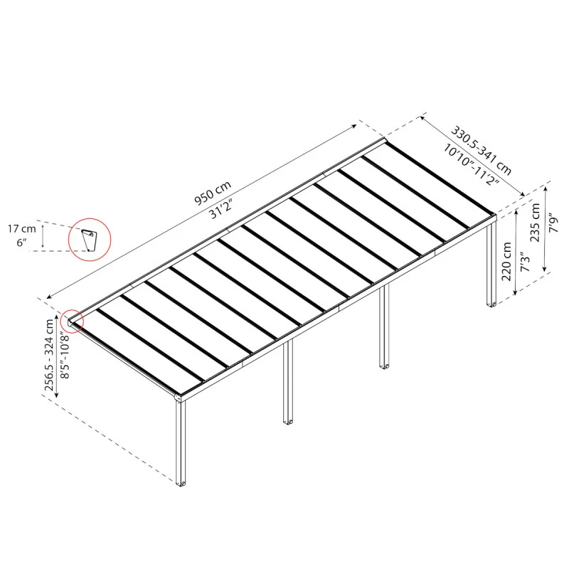 L’avis du spécialiste pour la pergola adossée Stockholm 350x950cm aluminium gris et polycarbonate avec stores de toit rétractables – Palram – Canopia