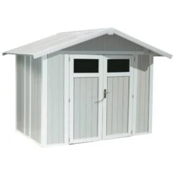 Abri De Jardin En PVC 7,53m² UTILITY Blanc Et Gris Bleu Grosfillex + Kit Ancrage Offert