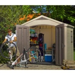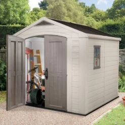 Abri De Jardin En Résine Beige 8,90m² + Kit De Fondation – JOBU