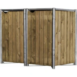 Cache-poubelle 2 Compartiments Müllbox En Bois Traité Gris 2x240L – HIDE