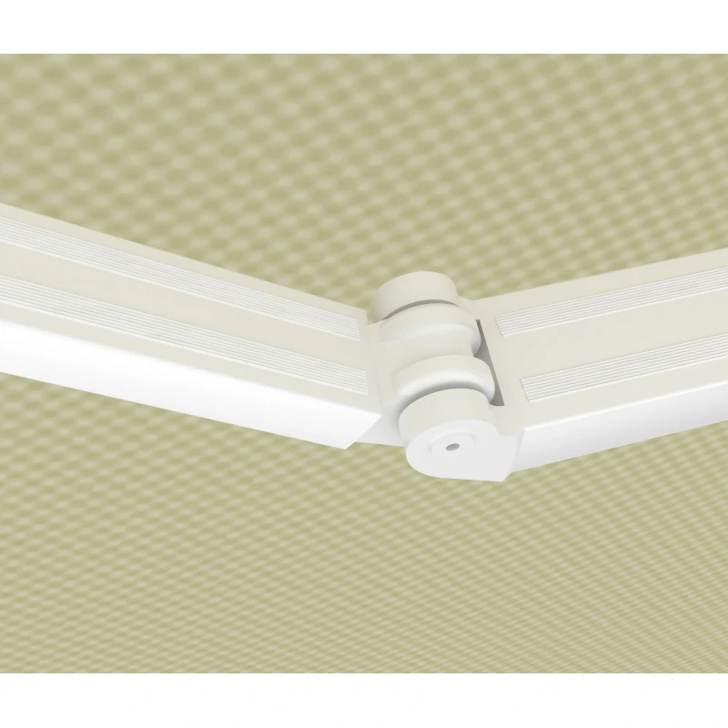 Esthétique, la toile beige unie en polyester 280gr/m² enduite PU s’accorde parfaitement bien avec sa structure métallique blanche. L’ensemble, aux tons contemporains, reste très discret.