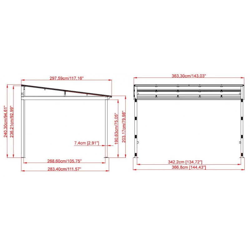 • Dimensions hors-tout : 363x298x240cm